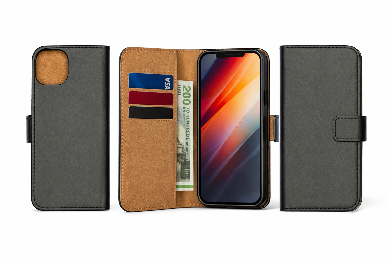 Hold dine kort og kontanter samlet med din telefon i et enkelt, lækkert design. Den magnetiske flip holder alt sikkert på plads, mens den bløde ruskind-inderside giver et eksklusivt look.