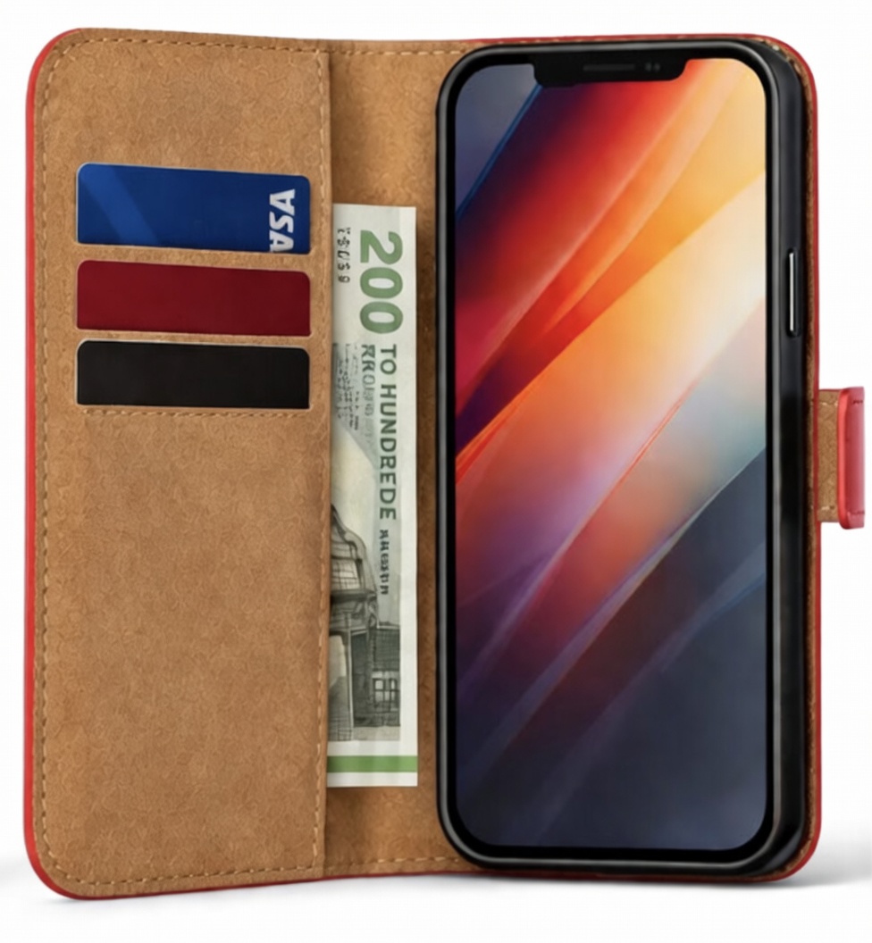 iPhone 14 Pro Max, Læder Flip Cover (Rød)